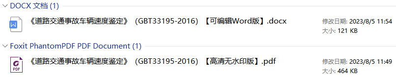 1、《道路交通事 故车辆速度鉴定》(GB/T33195-2016)【全文附高清无水印PDF+Word版下载】