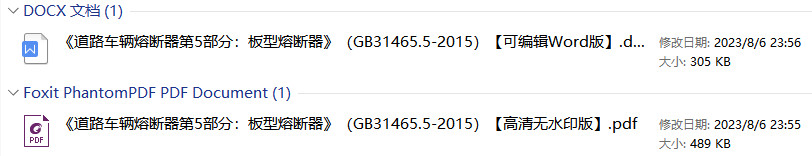 本系列打包下载:《道路车辆 熔断器》(GB/T31465)【第1-7部分打包下载】【全文附高清无水印PDF+DOC/Word版下载】