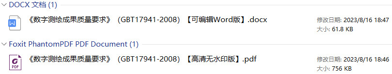 1、《数字测绘成 果质量要求》(GB/T17941-2008)【全文附高清无水印PDF+Word版下载】