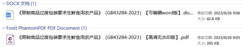 《限制商品过度包装要求生鲜食用农产品》(GB43284-2023)【全文附高清PDF+Word版下载】