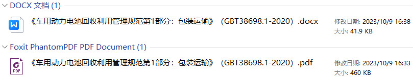 1、《车用动力电 池回收利用管理规范第1部分:包装运输》(GB/T38698.1-2020)【全文附高清PDF+Word版下载】