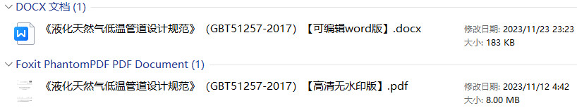 《液化天然气低温管道设计规范》(GB/T51257-2017)【全文附高清PDF+Word版下载】