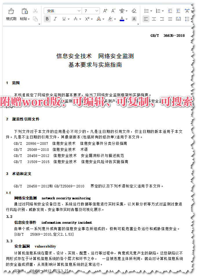 《信息安全技术网络安全监测基本要求与实施指南》(GB/T36635-2018)【全文附高清无水印PDF+可编辑Word版下载】