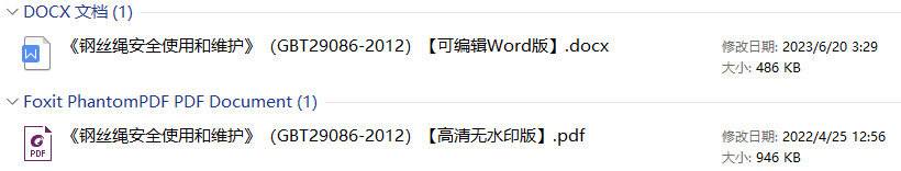《钢丝绳安全使用和维护》(GB/T29086-2012)【全文附高清无水印PDF+DOC/Word版下载】