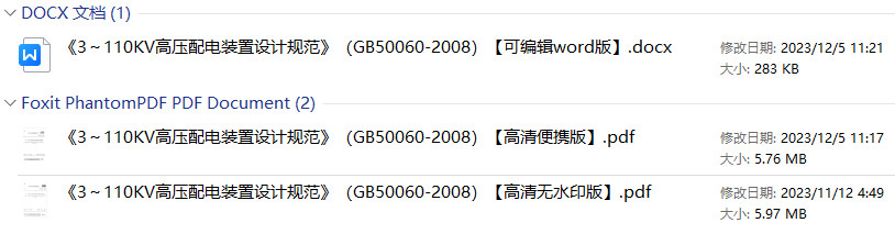 《3~110KV高压配电装置设计规范》(GB50060-2008)【全文附高清PDF+Word版下载】