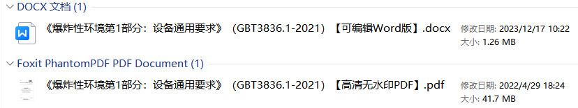 1、《爆炸性环境 第1部分:设备通用要求》(GB/T3836.1-2021)【全文附高清无水印PDF版下载】