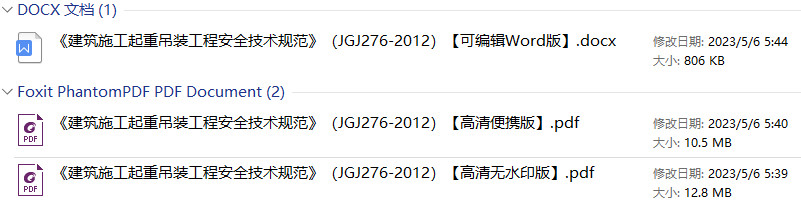 《建筑施工起重吊装工程安全技术规范》(JGJ276-2012)【全文附高清无水印PDF版+DOC/Word版下载】