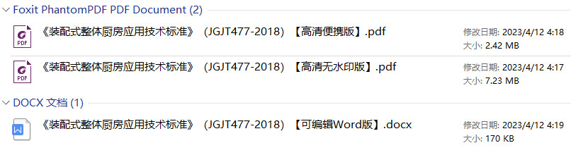 《装配式整体厨房应用技术标准》(JGJ/T477-2018)【全文附高清无水印PDF+DOC/Word版下载】