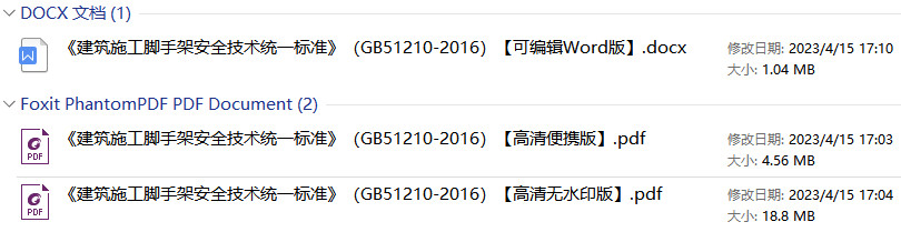 《建筑施工脚手架安全技术统一标准》(GB51210-2016)【全文附高清无水印PDF版+DOC/Word版下载】