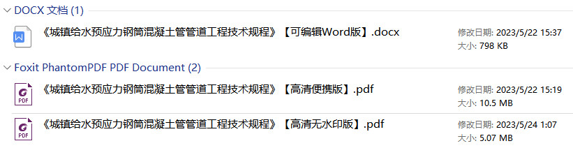 简介:为使采用预应力钢筒混凝土管的给水管道工程在设计、施工及验收中,做到技术先进、安全适用、经济合理、确保质