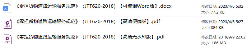 《零担货物道路运输服务规范》(JT/T620-2018)【全文附高清无水印PDF+DOC/Word版下载】