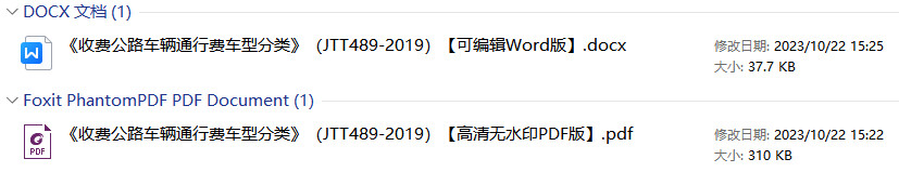《收费公路车辆通行费车型分类》(JT/T489-2019)【全文附高清PDF+Word版下载】