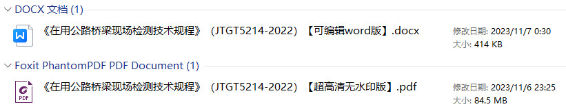 《在用公路桥梁现场检测技术规程》(JTG/T5214-2022)【全文附高清PDF+Word版下载】
