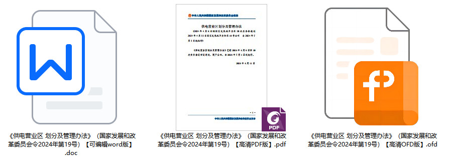 全文下载(PDF+word版):《供电营业区 划分及管理办法》(国家发展和改革委员会令2024年第19号)