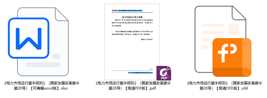 全文下载(PDF+word版):《电力市场运 行基本规则》(国家发展和改革委员会令2024年第20号)