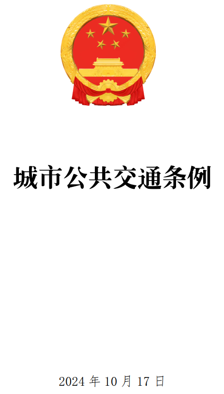 《城市公共交通条例》已经2024年8月19日国务院第39次常务会议通过,现予公布,自2024年12月1日起施行。