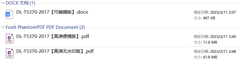 《水电水利工程施工通用安全技术规程》(DL/T5370-2017)【全文附高清无水印PDF版+DOC/Word版下载】