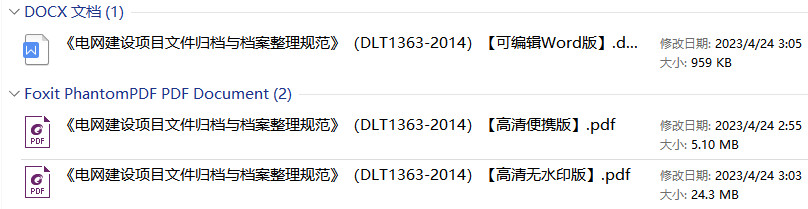 《电网建设项目文件归档与档案整理规范》(DL/T1363-2014)【全文附高清无水印PDF+DOC/Word版下载】