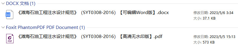 《滩海石油工程注水设计规范》(SY/T0308-2016)【全文附高清无水印PDF版+DOC/Word版下载】