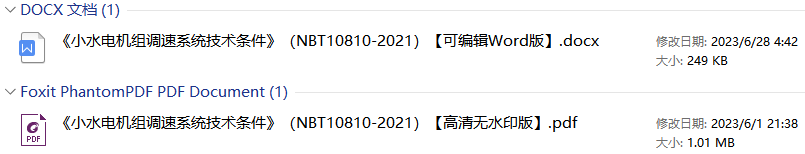 《小水电机组调速系统技术条件》(NB/T10810-2021)【全文附高清无水印PDF+DOC/Word版下载】