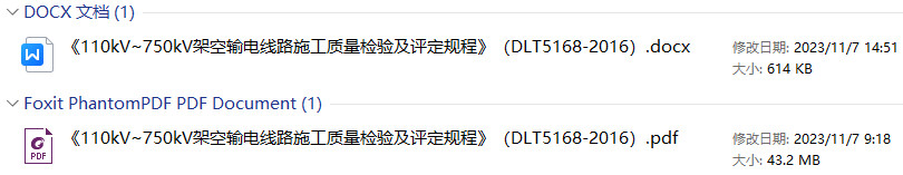 《110kV~750kV架空输电线路施工质量检验及评定规程》(DL/T5168-2016)【全文附高清PDF+Word版下载】