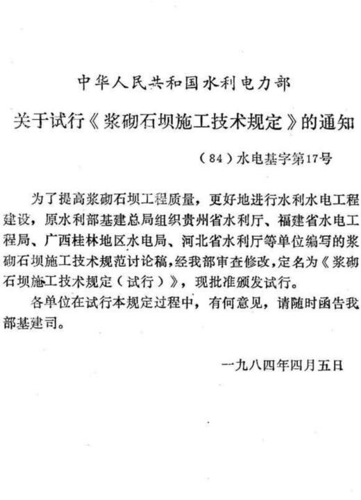《浆砌石坝施工技术规定》(SD120-84)【全文附高清无水印PDF版下载】