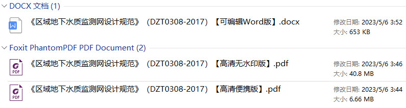 《区域地下水质监测网设计规范》(DZ/T0308-2017)【全文附高清无水印PDF版+DOC/Word版下载】