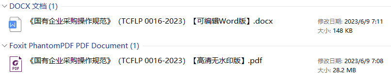 1、《国有企业采 购操作规范》(T/CFLP0016-2023)【2023修订版全文】【附高清无水印PDF+Word版下载】