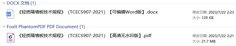 《轻质隔墙板技术规程》(T/CECS907-2021)【全文附高清无水印PDF+DOC/Word版下载】