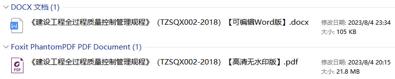 《建设工程全过程质量控制管理规程》(T/ZSQX002-2018)【全文附高清无水印PDF+Word版下载】