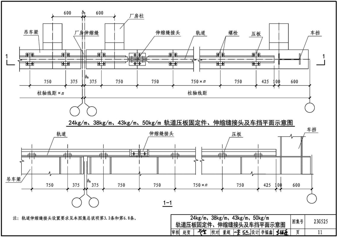 简介:本图集是对05G525《吊车轨道联结及车挡(适用于钢吊车梁)》的修编。本图集是钢吊车梁轨道联结及车挡的制作详图,适用于工业厂房和露天栈桥中的实腹式钢吊车梁。内容包括车挡、轨道拼接、轨道与钢吊车梁固定联结、轨道伸缩缝接头等。本图集供结构设计、施工人员参考使用。监理单位、建设单位工程技术人员也可参考使用。23G525《吊车轨道联结及车挡(适用于钢吊车梁)》国家建筑标准设计图集是对05G525《吊车轨道联结及车挡(适用于钢吊车梁)》的修编。本图集是钢吊车梁轨道联结及车挡的制作详图,适用于工业厂房和露天栈桥中的实腹式钢吊车梁。内容包括车挡、轨道拼接、轨道与钢吊车梁固定联结、轨道伸缩缝接头等。本图集供结构设计、施工人员参考使用。监理单位、建设单位工程技术人员也可参考使用。