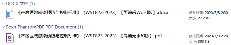 《产房医院感染预防与控制标准》(WS/T823-2023)【全文附高清无水印PDF+DOC/Word版下载】
