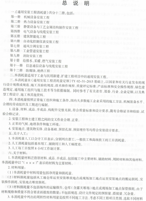 第十册《给排水、采暖、燃气安装工程》(以下简称本册)适用于工业与民用建筑生活给排水、采暖、室内空调水、燃气管道等安装工程,包括:给排水管道,采暖管道,空调水管道,燃气管道,管道附件, 卫生器具,供暖器具,燃气器具及其他,采暖、给排水设备,支架及其他等。