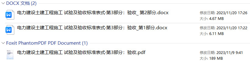 《电力建设土建工程施工、试验及验收标准表式第3部分:验收》【全文附高清PDF+Word版表格下载】