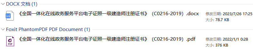 标准名称:全国一体化在线政务服务平台电子证照一级建造师注册证书