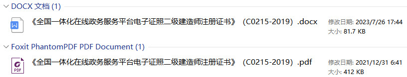 标准名称:全国一体化在线政务服务平台电子证照二级建造师注册证书