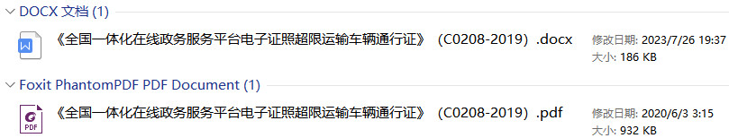 《全国一体化在线政务服务平台电子证照超限运输车辆通行证》(C0208-2019)【全文附高清无水印PDF+DOC/Word版下载】