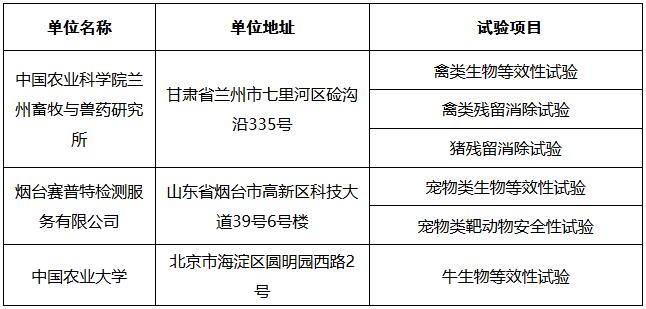 符合兽药临床试验质量管理规范要求的单位和试验项目