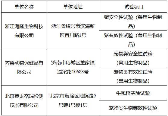符合兽药临床试验质量管理规范要求的单位和试验项目