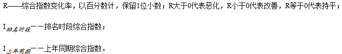 城市环境空气质量变化程度排名以空气质量综合指数变化率作为指标进行排名,方法如下: