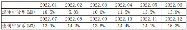 注4:自2022年12月起,“流通中货币(M0)”含流通中数字人民币。12月末流通中数字人民币余额为136.1亿元。修订后,2022年各月末M1、M2增速无明显变化。修订后M0增速如下: