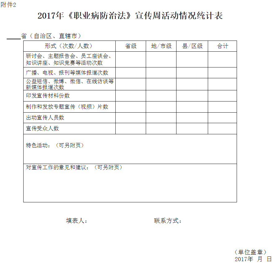2.2017年《职业病防治法》宣传周活动情况统计表