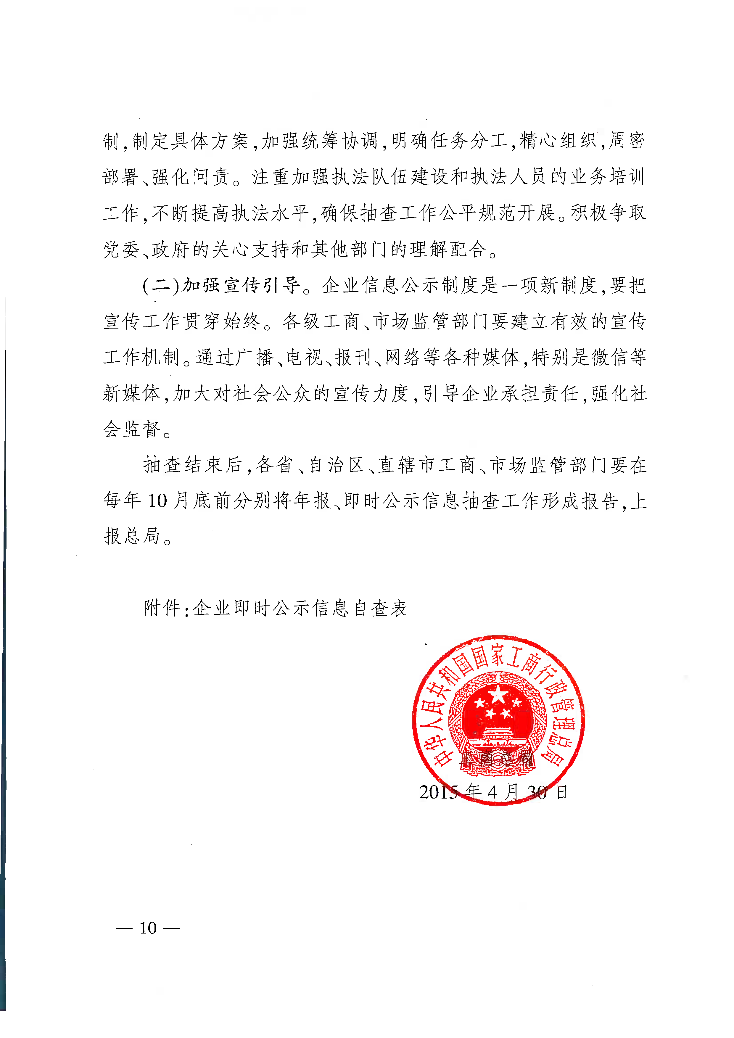 工商企监字〔2015〕59号《工商总局关于做好企业公示信息抽查工作有关问题的通知》