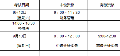 中级资格(含无纸化试点地区)、高级资格纸笔考试于9月12日—13日举行。