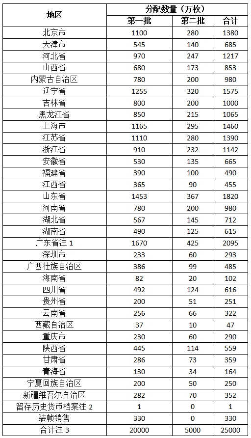 3.中国人民银行可能根据各地预约情况对各省、自治区、直辖市的分配数量进行调整,调整结果将另行公布。