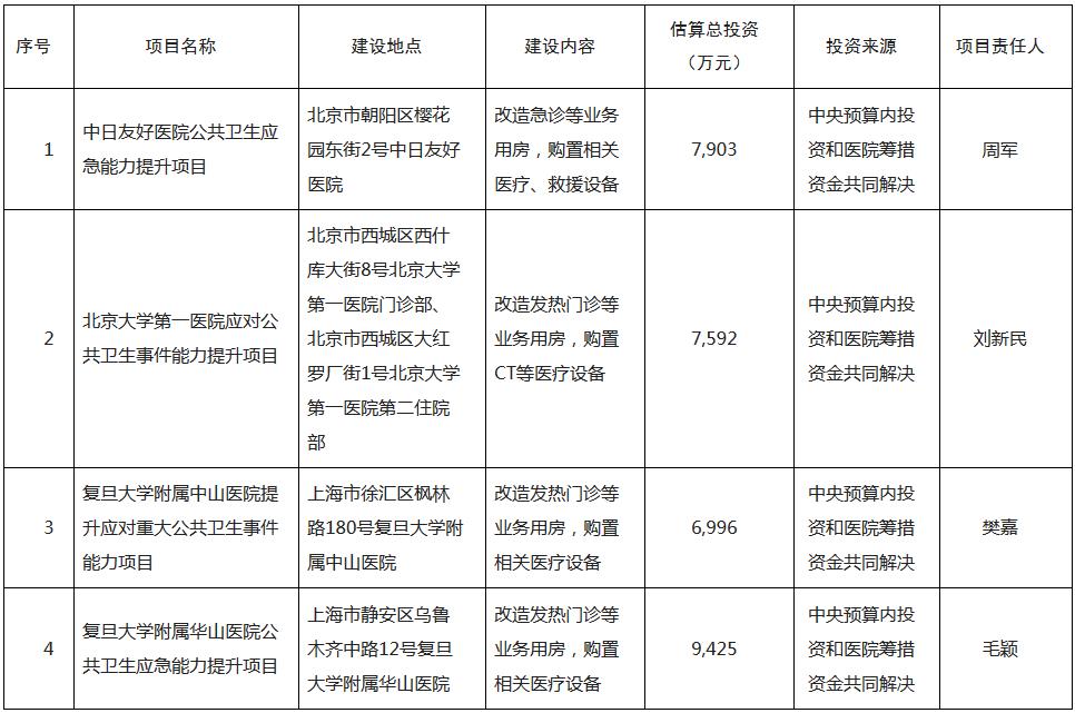 1.中日友好医院等4家委属(管)医院公共卫生应急能力提升项目基本情况表(分发各单位)