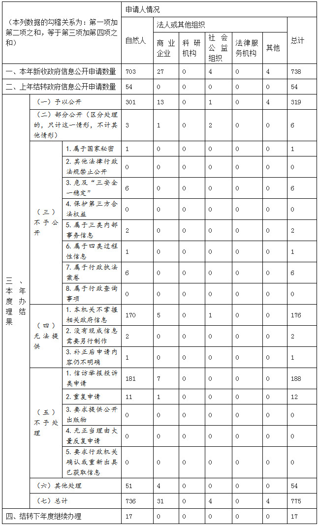 经查,2019年收到,结转至2020年作出答复的政府信息公开申请54件。2020年收到,结转至2021年作出答复的政府信息公开申请17件。综上,2020年度我委共办理政府信息公开答复775件。