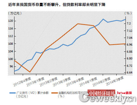 数据显示,多次调控后,资金利率已现下行态势。2014年10月份,同业拆借和债券回购加权平均利率分别为2.69%和2.64%,比上月回落0.28个和0.29个百分点,比2013年12月份低1.47个和1.64个百分点;企业贷款(含票据)加权平均利率为6.88%,较2013年12月份回落0.32个百分点。10月末,3年期、7年期AA级企业债的到期收益率分别为5.32%和6.17%,较上年末分别下降2.03个和1.29个百分点。甚至连民间借贷利率等也有不同程度的回落。