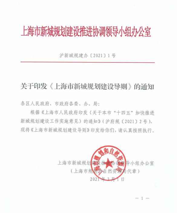 《上海市新城规划建设推进协调领导小组办公室关于印发〈上海市新城规划建设导则〉的通知》 沪新城规建办〔2021〕1号 全文下载(PDF版):上海市新城规 划建设导则【提取码: fnht】【解压缩密码://www.0798ci.com】