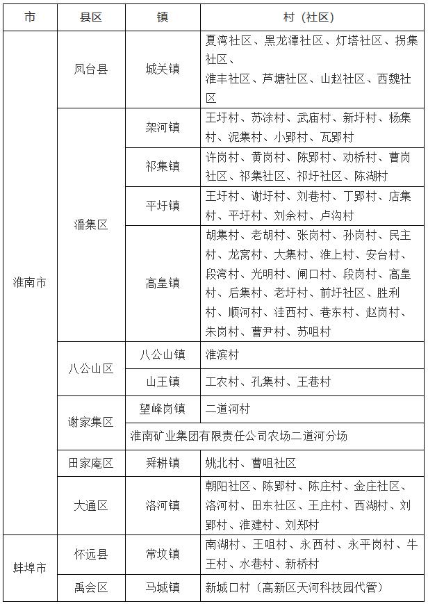 一、自通告发布之日起至2027年12月31日,淮河干流峡山口至涡河口段行洪区调整和建设工程永久征地范围为停止新增建设项目并控制人口迁入区域(以下简称“控制区”)。控制区涉及:淮南市凤台县、潘集区、八公山区、谢家集区、田家庵区、大通区,蚌埠市怀远县、禹会区,共计12个镇83个村(社区)1个农场。
